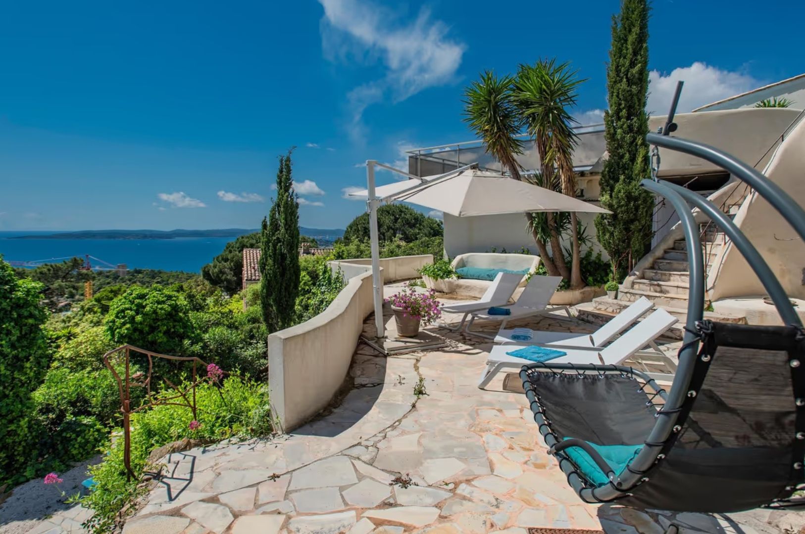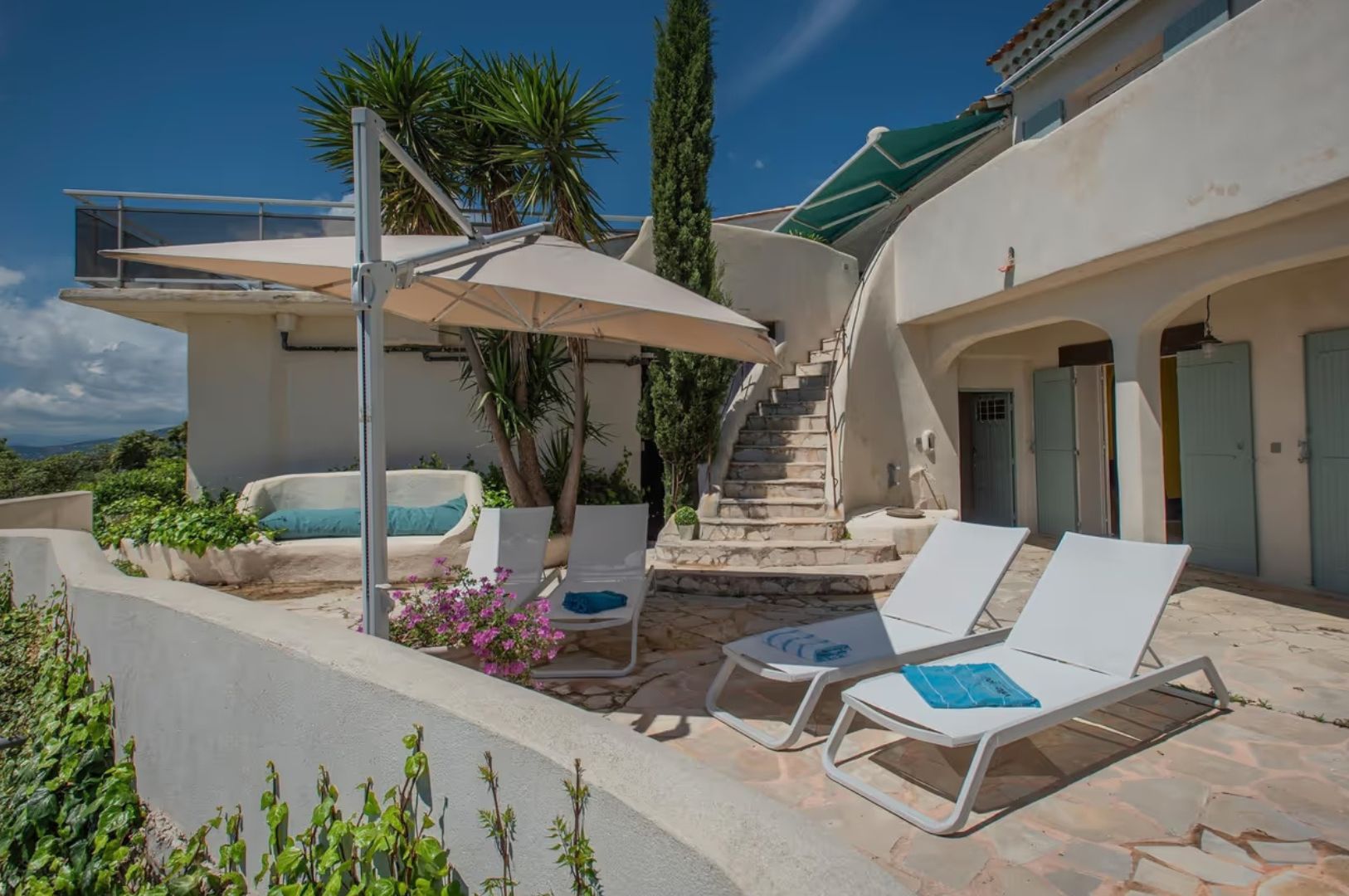 Villa Les Issambres met zwembad is een luxe vakantiehuis voor 13 personen op een heuvel met adembenemend uitzicht op de Middellandse Zee, op slechts 5 min. van het kustplaatsje Les Issambres aan de Côte d’Azur.
